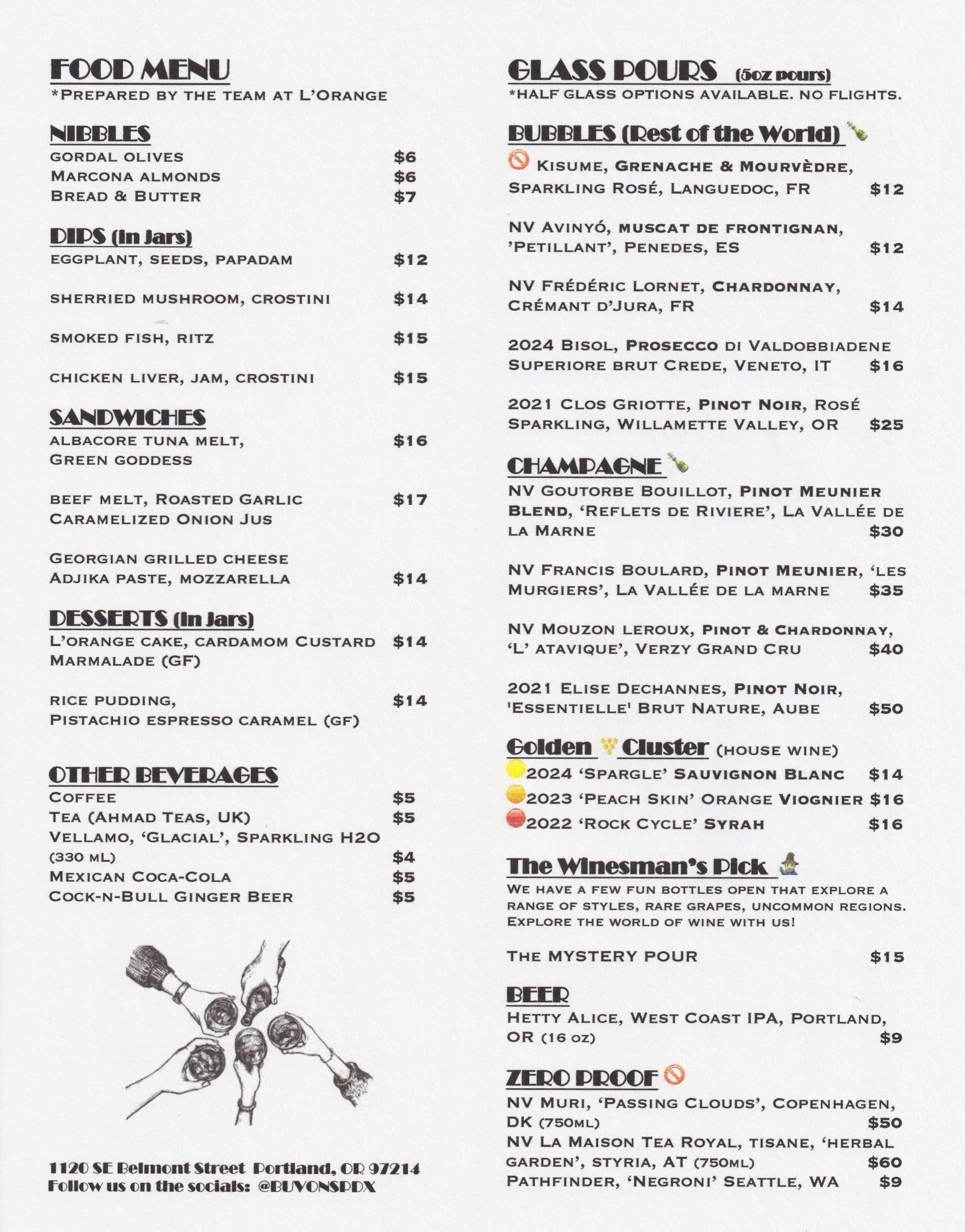 From the team behind L’Orange, we bring you our latest creation; Buvons. After many years of pairing wines for our guests at Holdfast Dining, JEM Supper Club, and L’Orange, pairing with bubbles was always the easiest and thought provoking choice.